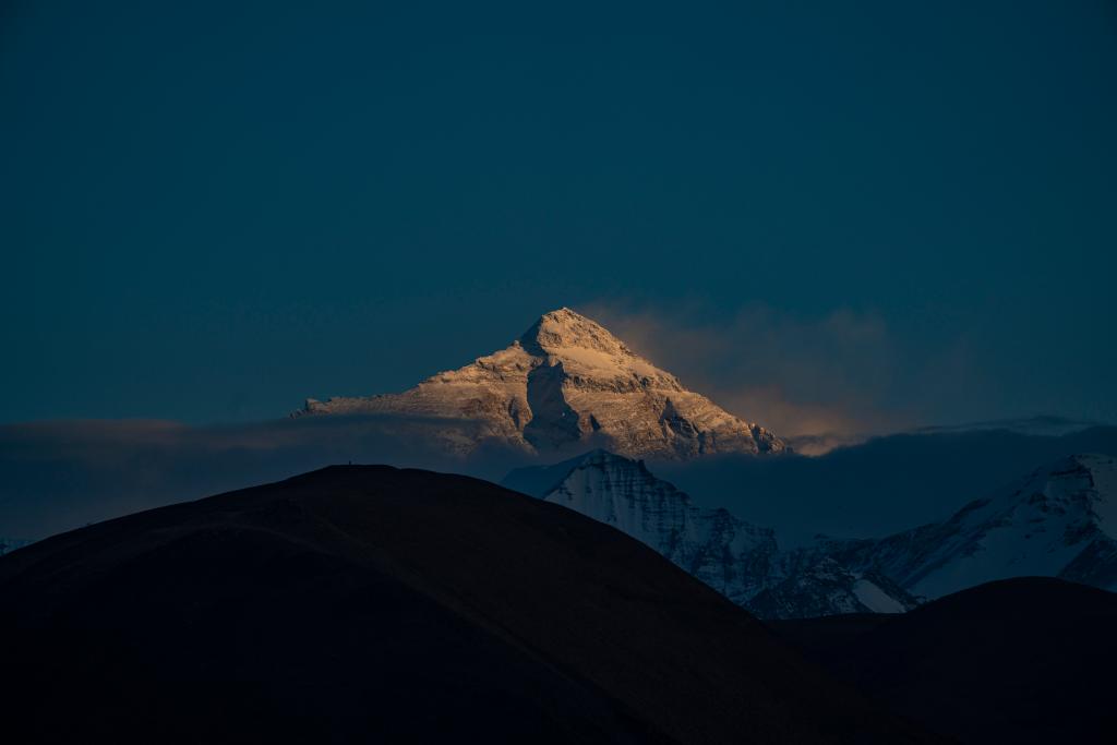 這是日落時(shí)分的珠穆朗瑪峰(5月23日攝)。新華社記者 丁汀 攝