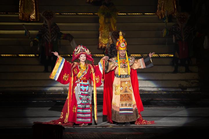 同一個夜晚,穿過近2000公里,在日光城拉薩,婉轉(zhuǎn)的唱段中,依山而建的舞臺上,大型史詩劇《文成公主》講述著盛唐時期公主從長安城到邏些(拉薩舊稱)的故事,一幅民族交往交流交融的歷史畫卷就此展開。