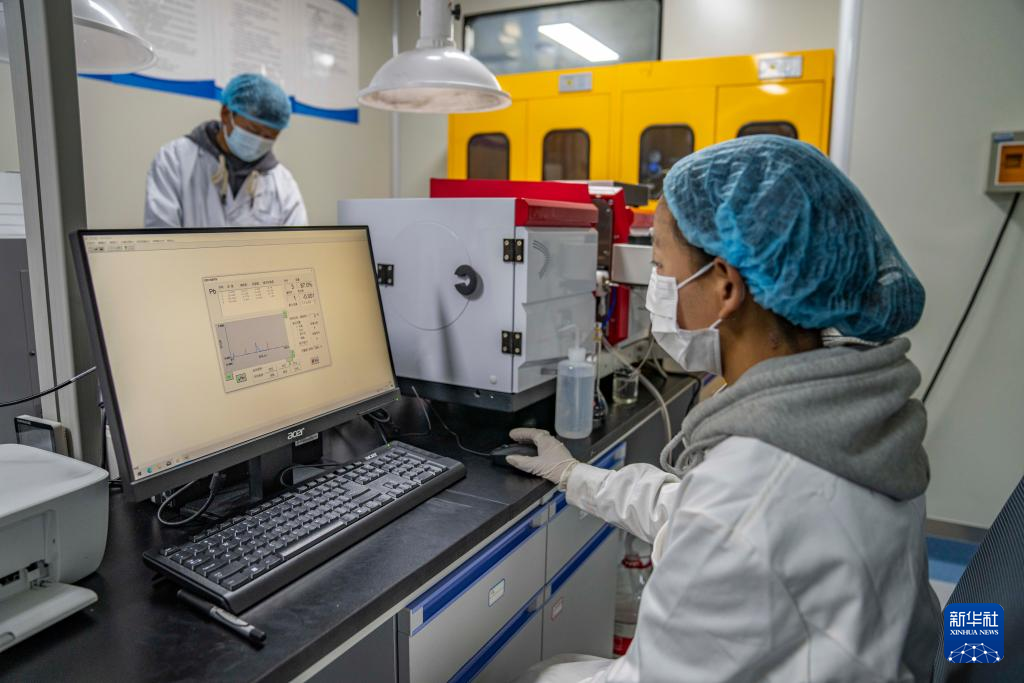 在聶榮縣嘎確生態(tài)畜牧業(yè)發(fā)展有限責(zé)任公司,檢驗員達娃卓瑪在檢測奶制品(5月13日攝)。新華社記者 孫非 攝