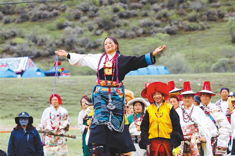 恰拉山以北的林周縣境內(nèi),處處是一片湖光山色交相輝映、風(fēng)吹草低見牛羊的美景,熱振國家森林公園、旁多水庫、生態(tài)長廊阿堆溝等旅游景點(diǎn)集中在北部三鄉(xiāng)。“繽紛四季·多彩林周”活動(dòng)在林周縣唐古鄉(xiāng)藏雄村舉辦。從拉薩出發(fā),驅(qū)車170公里,翻越海拔5000多米的恰拉山。一路上,古柏環(huán)繞,云霧繚繞,漫山遍野的杜鵑花競相綻放,宛如進(jìn)入了世外桃源。