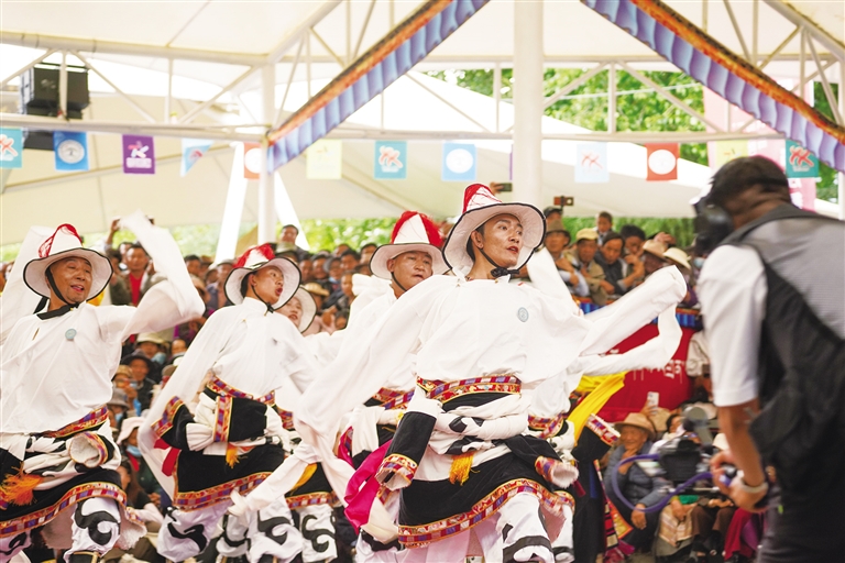 “我們幾個朋友退休后就加入了鍋莊舞健身隊伍,每天清晨大家不約而同地來到宗角祿康公園,以激昂的鍋莊開始一天的生活,這樣既能鍛煉身體,又能愉悅心情,大家都特別享受這種狀態(tài)。”觀眾拉姆次仁說。