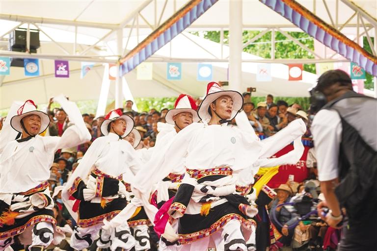從傳統(tǒng)民族舞到現(xiàn)代創(chuàng)新舞,每支舞蹈都蘊含著藏族人民對家鄉(xiāng)的熱愛和對美好生活的向往。比賽中,參賽人員身著特色民族服飾,伴隨著優(yōu)美激昂的旋律,踩著歡快的節(jié)拍,以飽滿的熱情和精湛的舞技,演繹了一場精彩而富有特色地域文化的廣場舞盛宴,凸顯了非物質(zhì)文化遺產(chǎn)的傳承創(chuàng)新發(fā)展。