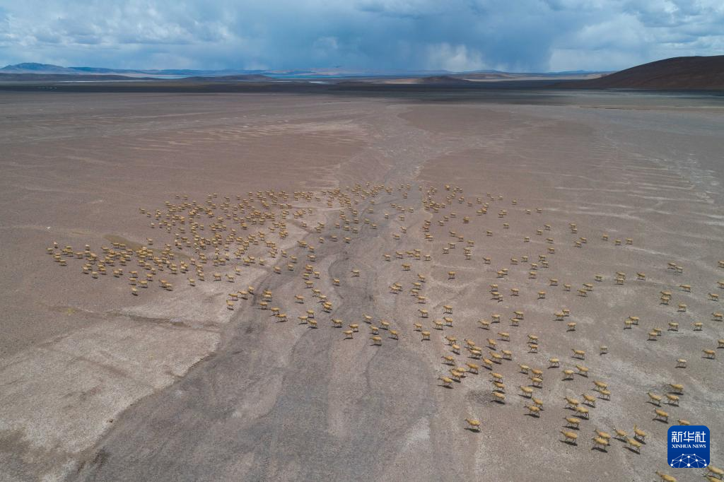 遷徙途中的藏羚羊(6月14日攝)。新華社記者 旦增尼瑪曲珠 攝