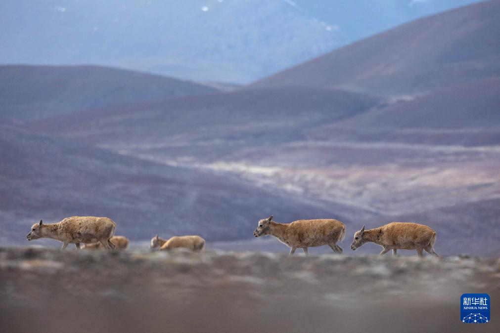 6月15日清晨在羌塘國家級(jí)自然保護(hù)區(qū)拍攝的遷徙中的母藏羚羊。新華社記者 費(fèi)茂華 攝