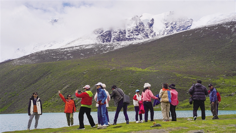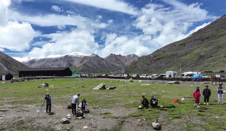 “眼前的景色如此浩瀚,無論我們?nèi)绾闻?,都無法將其完全收入眼底;手中的相機(jī)快門不停地按下,卻總感覺無法捕捉到每一處細(xì)節(jié)的美麗;社交媒體上的照片和視頻,雖然已經(jīng)分享了無數(shù),但總覺得還有更多美好未能展現(xiàn)。言語在這一刻顯得如此蒼白無力,無法完全傳達(dá)我們面對(duì)美景時(shí)的激動(dòng)心情?!边@是河南游客張曉明和劉芳夫婦對(duì)薩普雪山的贊美。置身于這絕美的畫卷中,一聲聲驚嘆,是他們對(duì)大自然鬼斧神工的贊美,也是他們內(nèi)心震撼的真實(shí)寫照。