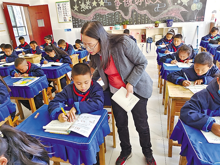 廣東省第三批“組團式”教育援藏隊員韓詠梅在察隅縣小學授課。
