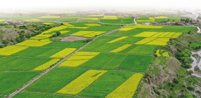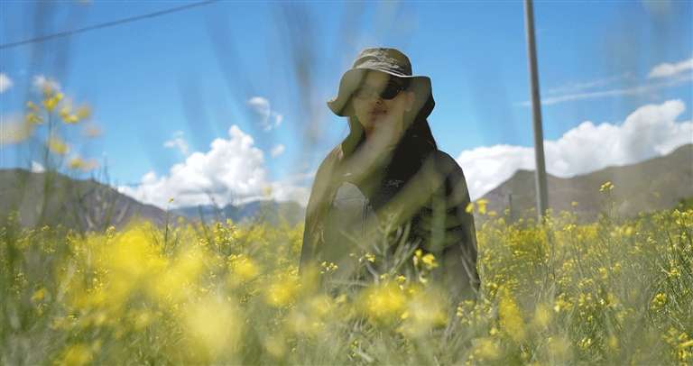 7月初,記者一行驅(qū)車從拉薩出發(fā),在開往錯那市的路上,經(jīng)過了瓊結(jié)縣百畝油菜花和隆子縣錯落有致的油菜花田。烈日下,油菜花是這片大地的“主角”,是山南市每年盛夏從不缺席的芬芳。一路走來,油菜花肆意地盛開在道路兩旁、村莊里、半山腰……微風(fēng)拂過,花朵搖曳生姿綻放著,從稍遠處看,俗坡奴村錯落分布在黃綠交錯的田野中,仿若一幅美麗清新的鄉(xiāng)村田野詩畫。此時,看風(fēng)景的行人紛紛鉆進花田中,仿佛是跟油菜花“爭芳斗艷”。