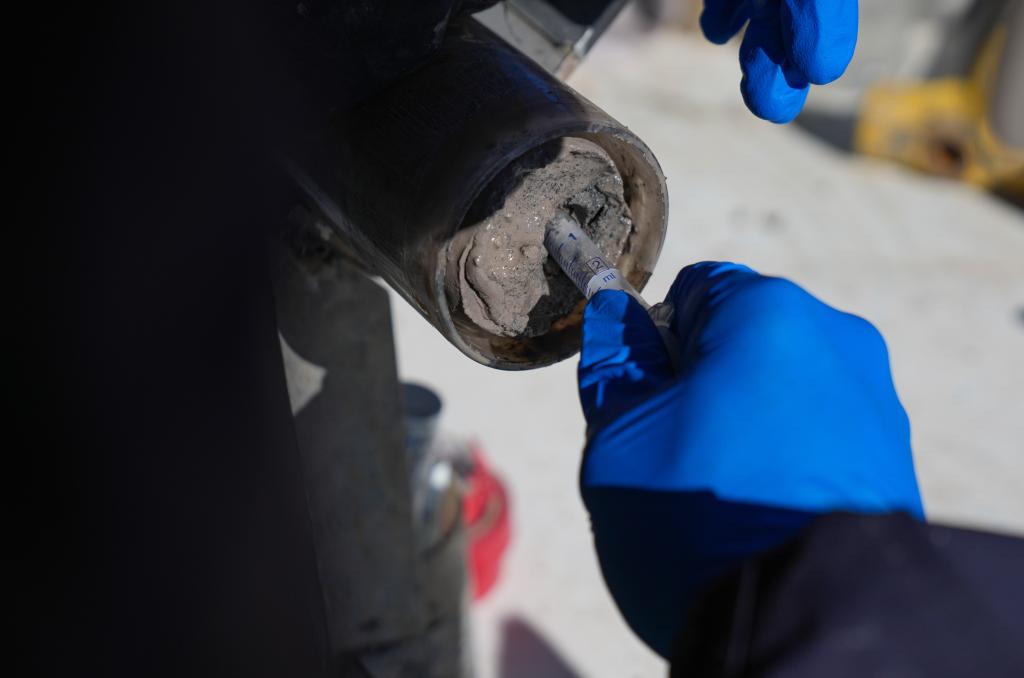 鉆取含有泥土、砂石的湖泊巖芯卻是一項(xiàng)復(fù)雜且精細(xì)的工作??蒲腥藛T利用集成的鉆探系統(tǒng),小心翼翼地從湖底取出連續(xù)的湖泊巖芯樣本,這些裝著湖泊巖芯的采樣管如同“時(shí)間膠囊”,封存著青藏高原納木錯(cuò)地區(qū)百萬年來的環(huán)境氣候變化信息。