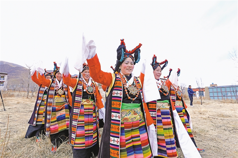 “如今,這支隊伍已發(fā)展到20多名成員,都是當(dāng)?shù)厝罕姟K囆g(shù)隊經(jīng)常受邀參加各種大小晚會、重要節(jié)日演出和赴區(qū)內(nèi)外非遺展演等,其影響力和傳播力不斷提升,特別是甲瑪諧欽《和親路》受到廣泛歡迎。”甲瑪鄉(xiāng)工作人員德吉卓嘎說。