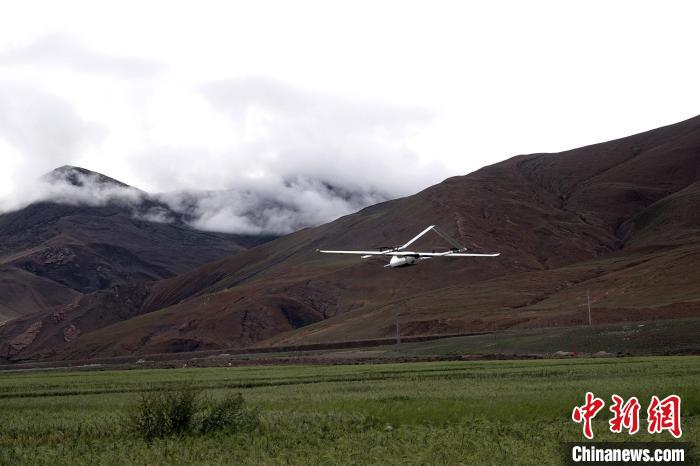 8月8日,珠峰地區(qū)水-熱-碳通量觀測試驗無人機起飛。中新網(wǎng)記者 孫自法 攝