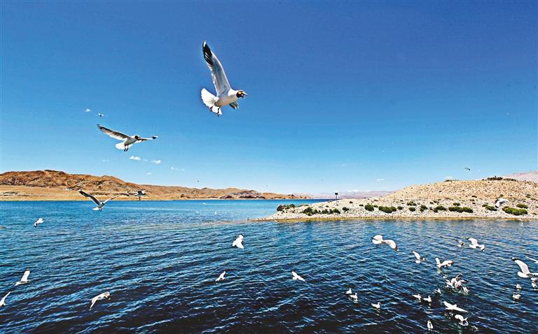 “現(xiàn)在的拉薩河更像一個(gè)湖,湖寬水深、濤聲陣陣,金色的陽光灑滿湖面,一陣風(fēng)吹來,掀起了不少漣漪。成群結(jié)隊(duì)的候鳥在湖面自由自在地翱翔、嬉戲,讓人心曠神怡。”傍晚時(shí)分,家住頓珠金融城的拉薩市民平措在拉薩河三號(hào)閘上悠閑散步、感慨地說道。