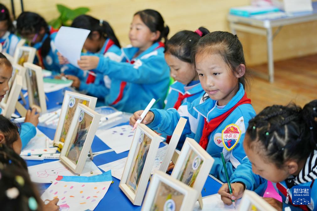 8月15日,拉魯小學(xué)的學(xué)生在拉魯濕地國家級自然保護(hù)區(qū)管理局科普小教室里進(jìn)行生態(tài)主題繪畫。