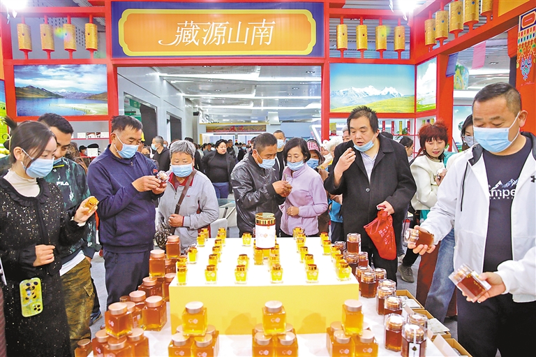 圖為2023年4月,安徽省援藏工作隊(duì)組織山南市17家企業(yè)參加淮北食品工業(yè)博覽會(huì)。(圖片由安徽省援藏工作隊(duì)提供)
