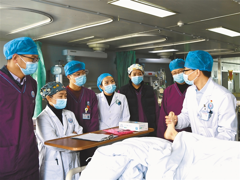 圖為北京大學人民醫(yī)院對口支援自治區(qū)人民醫(yī)院重癥醫(yī)學科醫(yī)生帶領當?shù)蒯t(yī)生在病房查房。記者 洛桑 攝