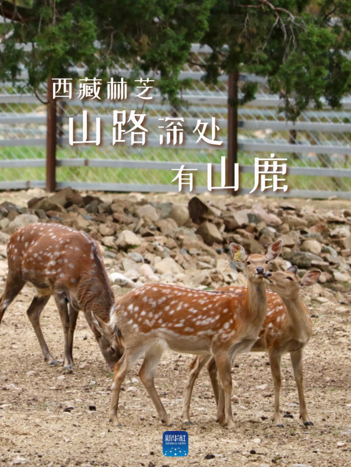 在工布江達(dá)縣高原生態(tài)養(yǎng)鹿基地,幾只梅花鹿在玩鬧嬉戲。新華社記者沈曉朦 攝