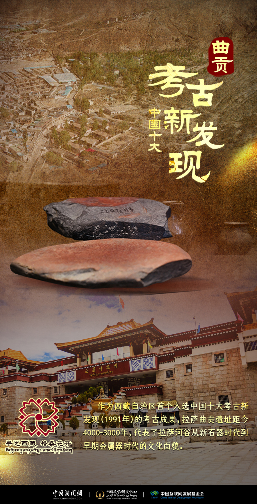 卡若遺址距今約5000年左右,第一次將西藏高原史前人類生存活動的科學證據(jù)揭露于世。2021年10月,西藏昌都卡若遺址入選中國“百年百大考古發(fā)現(xiàn)”。曲貢遺址位于拉薩市北郊,距市區(qū)約五公里,是迄今在西藏發(fā)現(xiàn)的海拔最高、面積最大,文化層堆積較厚,文化內涵極其豐富的遺址之一,被譽為拉薩的“半坡”。它們勾勒出青藏高原的文明年輪。