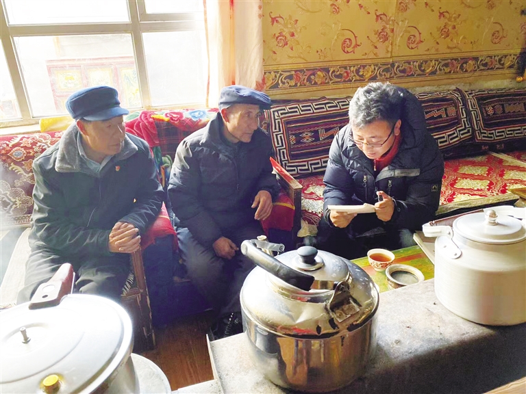 旦增頓珠作為隊長和第一書記,一邊努力克服高反給自身帶來的不適,一邊幫助隊員調(diào)整心態(tài)、適應(yīng)環(huán)境,并主動挑起了照顧大家的重擔(dān)——到草場上撿牛糞取暖,到小河溝破冰挑水,研究如何用高壓鍋做飯。他的付出,隊員們看在眼里、記在心里,在旦增頓珠的帶領(lǐng)和鼓舞下,隊員們很快適應(yīng)了高原的生存環(huán)境,隨即投入到走訪和調(diào)研工作中。