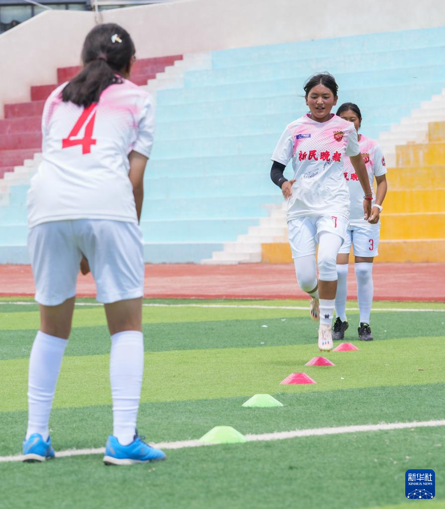 如今,球隊的發(fā)展得到了學(xué)校和社會的支持,為她們提供了更多機(jī)會和平臺。球隊教練王劍平是一名上海援藏教師,他感慨道:“很多孩子因球結(jié)緣,一個足球,一群伙伴,編織了她們的足球夢想。這些孩子年齡雖小,但她們能吃苦、肯付出。烈日下,她們就像堅強的格?;ò憔`放。”