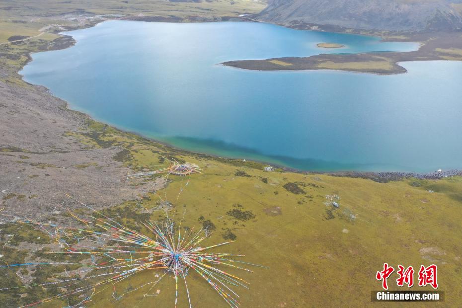 9月6日,思金拉措景區(qū)風光秀麗。思金拉措湖位于西藏拉薩市墨竹工卡縣,海拔4500米,湖邊群山高聳、草甸金黃。從空中俯瞰,思金拉措湖心島如同“黃金右腳”踢球。圖為思金拉措一角。(無人機照片)