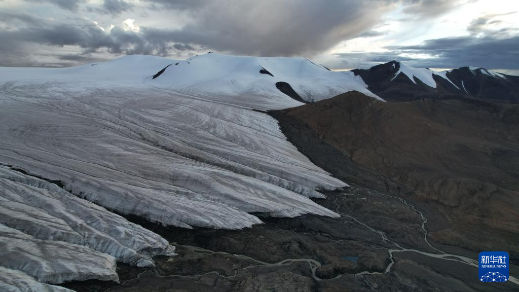 這是9月4日拍攝的普若崗日冰原8號冰川和冰川消融形成的徑流(無人機(jī)照片)。新華社記者 劉詩平 攝