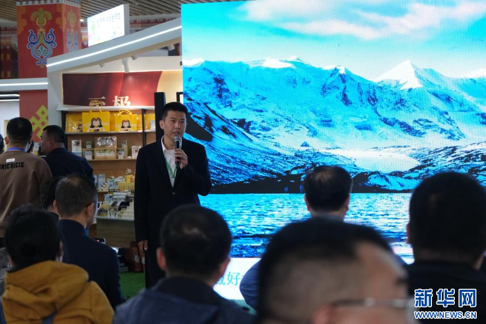 西藏供銷集團(tuán)相關(guān)負(fù)責(zé)人正在向參會(huì)企業(yè)推介西藏特色產(chǎn)品。(西藏供銷集團(tuán)供圖)