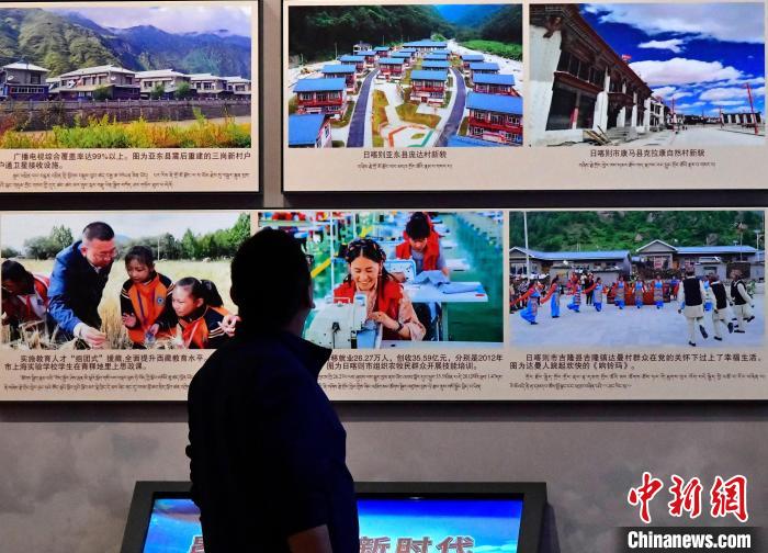 9月14日,觀眾在西藏百萬(wàn)農(nóng)奴解放紀(jì)念館日喀則分館內(nèi)看展覽。中新社記者 李林 攝