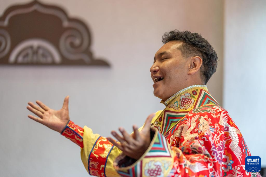 9月13日,格薩爾說(shuō)唱藝人斯塔多吉在發(fā)布儀式現(xiàn)場(chǎng)表演格薩爾說(shuō)唱。新華社記者 旦增尼瑪曲珠 攝
