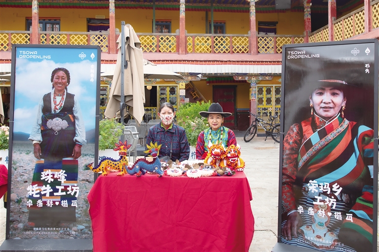 “阿佳學(xué)堂+卓番林社區(qū)工坊”通過培養(yǎng)本地女性的創(chuàng)造力,喚醒女性自信心,利用女性力量給企業(yè)帶來生命力,從而打造“家門口”的工作坊,實(shí)現(xiàn)女性發(fā)展的社會(huì)價(jià)值。巴措、桑吉卓瑪、白瑪曲珍三姐妹,于2008年在卓番林接受民族手工藝品制作技能培訓(xùn)。自此以后,她們便成為卓番林的“元老級(jí)”手藝人,也成了多年摯友。20多年間,她們始終如一地從卓番林接收訂單,將原材料帶回家中,在閑暇之余憑手工精心制作。這些作品隨后再由卓番林統(tǒng)一回購,并迅速上架銷售。以卓番林十二生肖玩偶系列中的“龍女:益西卓瑪”為例,其制作過程繁復(fù)精細(xì),即便是技藝嫻熟的手藝人,也需耗費(fèi)整整兩天時(shí)間,才能一針一線地縫制完成。“收入還是挺好的,高峰期一個(gè)月能達(dá)到近2萬元呢,我很慶幸當(dāng)年參加了這個(gè)培訓(xùn)!”巴措說。