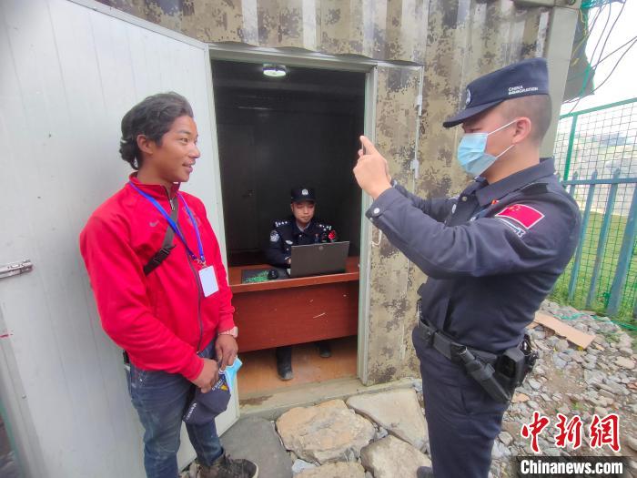 圖為吉隆出入境邊防檢查站民警在貢當(dāng)傳統(tǒng)邊貿(mào)點(diǎn)對入境邊民進(jìn)行人證對照?!〖拒?攝