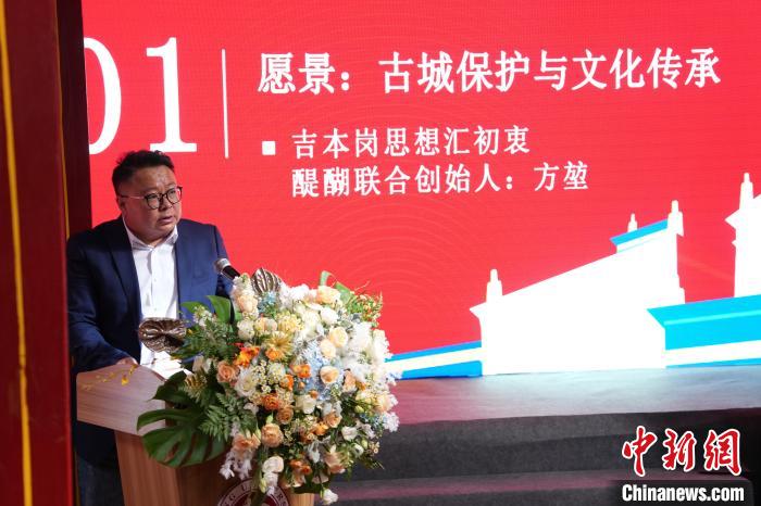 吉本崗藝術(shù)中心負(fù)責(zé)人方堃在活動(dòng)中演講。記者 崔楠 攝