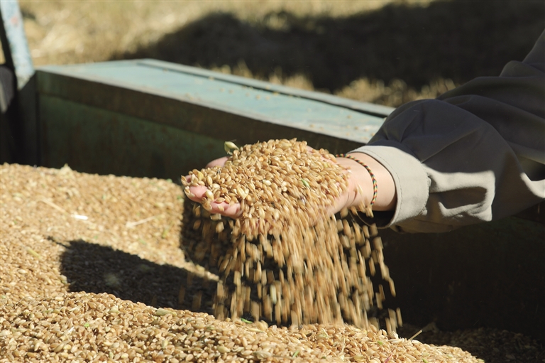 “我家共有92畝多的農(nóng)田,家里有三個(gè)勞力,我負(fù)責(zé)秋收,其余兩個(gè)外出務(wù)工,以前我們家秋收工作需要一個(gè)月多的時(shí)間,現(xiàn)在農(nóng)業(yè)機(jī)械化了,再也不用擔(dān)心秋收工作,聽說今年賣良種每斤有0.3元的補(bǔ)貼,準(zhǔn)備把自家10000斤良種賣掉,預(yù)計(jì)今年有56000多元的收入?!闭诎徇\(yùn)青稞粒的村民普瓊高興地說道。