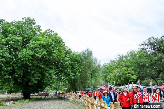 圖為粵港澳大灣區(qū)文旅商和援藏老干部代表探訪(fǎng)山南加查熱果村千年核桃林。山南市文化和旅游局 供圖