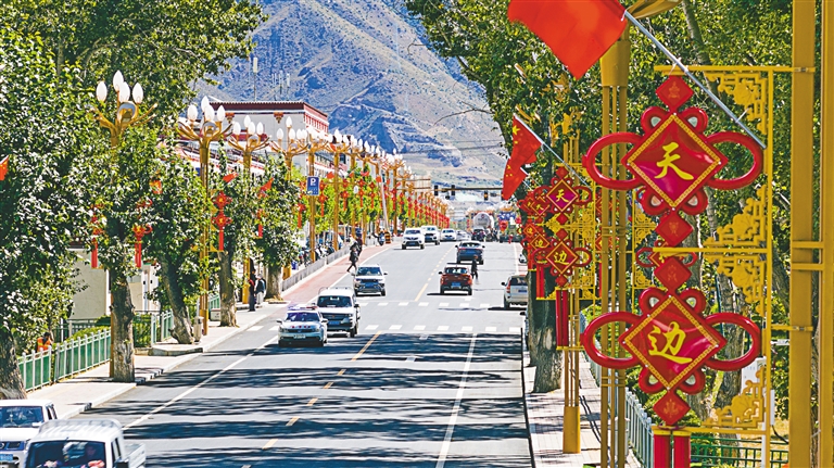 喜迎國(guó)慶,裝扮一新的拉薩市墨竹工卡縣縣城。記者 唐斌 通訊員 洛克 攝