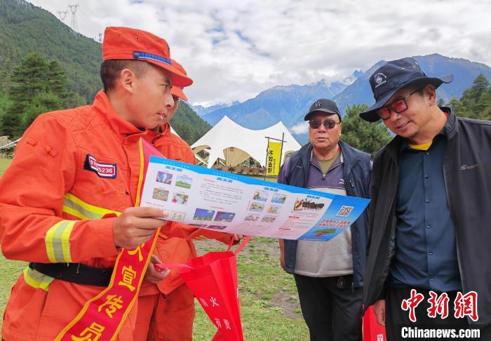“同志您好,秋季氣候干燥,景區(qū)游玩一定要杜絕攜帶火種上山?!痹诓芸h嘎朗湖、崗云杉林景區(qū),森林消防員向游客們宣傳森林防滅火常識(shí),提供助民幫困服務(wù),倡導(dǎo)游客安全出行、文明旅游。