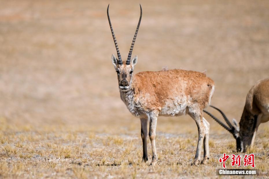 圖為10月3日,西藏羌塘草原上的兩只藏羚羊。中新社記者 江飛波 攝
