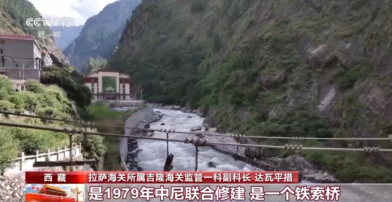 總臺(tái)央視記者 徐平:吉隆口岸是216國(guó)道的終點(diǎn),同時(shí)也是千年古道——蕃尼古道的起點(diǎn)。從歷史上來(lái)看,吉隆一直就是西藏對(duì)外友好交往和貿(mào)易通商的重要通道之一,新中國(guó)成立以后,中尼兩國(guó)以吉隆河為界,水面上的四代熱索橋不僅見證了歷史變遷的滄桑,也續(xù)寫著今天的繁榮與活躍。