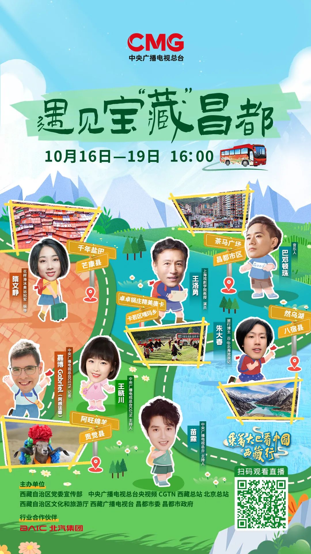 10月16日至10月19日,“跨越山海 格桑花開——乘著大巴看中國 西藏行”大型融媒體活動播出,總臺大巴車開進西藏昌都,自芒康過貢覺,經卡若到八宿,海拔從2300米一路攀升,探訪團深入千年鹽田,探秘萬年冰川,品嘗原生態(tài)的“阿旺綿羊”,領略中國民間文化藝術之鄉(xiāng)——嘎瑪鄉(xiāng)的風采,多彩的地貌風光與璀璨的藏東文化,盡顯昌都文化魅力。本次活動由西藏自治區(qū)黨委宣傳部、中央廣播電視總臺央視頻、CGTN、西藏總站、北京總站和西藏自治區(qū)文化和旅游廳、西藏廣播電視臺、昌都市委市政府聯(lián)合主辦。