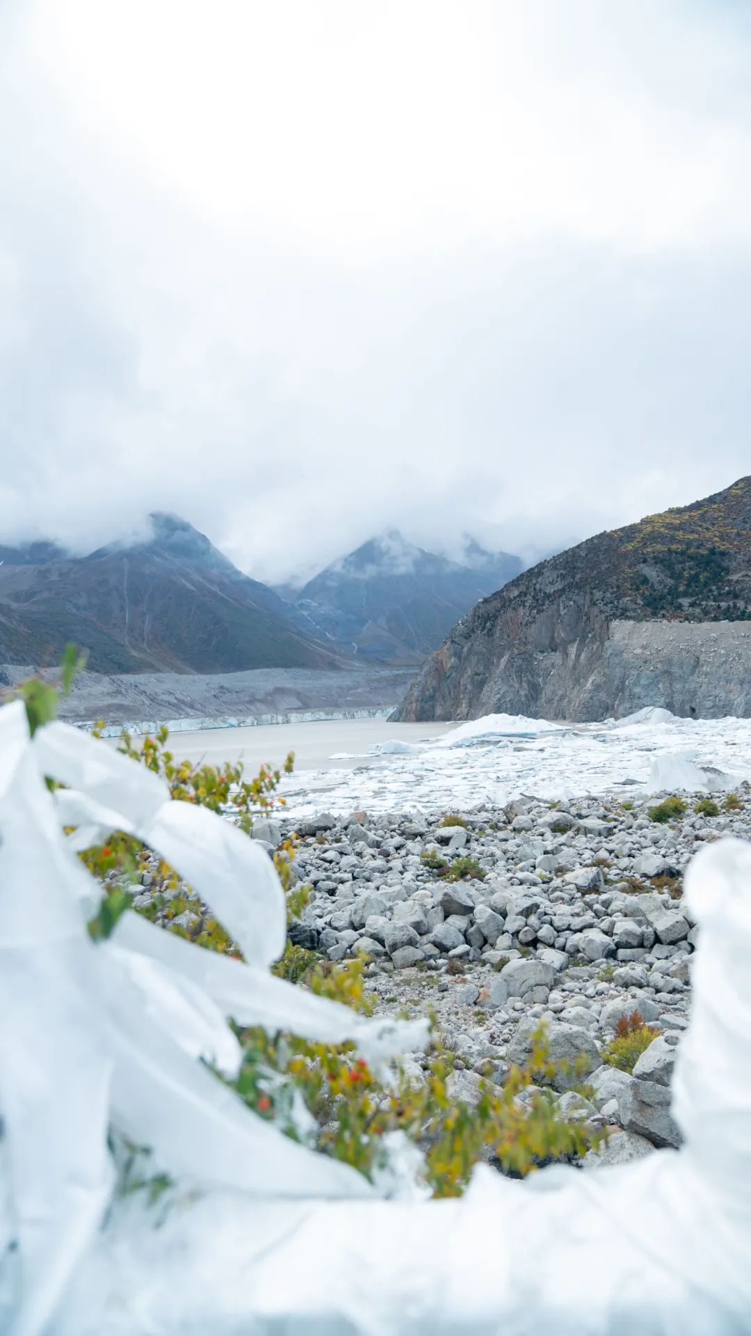 在八宿來古村,環(huán)顧四周可見至少6條冰川,統(tǒng)稱來古冰川群。冰川從海拔6600多米的山峰一路傾瀉至海拔4000米左右,站在它寬闊的冰體之上,猶如穿越到冰河世紀。當我們站在陽光照耀下絕美的天然藍冰洞里,仿佛穿越進童話之中。當日頭漸漸落下,在然烏湖畔,萬丈金光從天而降照射在雪山之巔,一幅“日照金山”之景就此“繪制”完成。