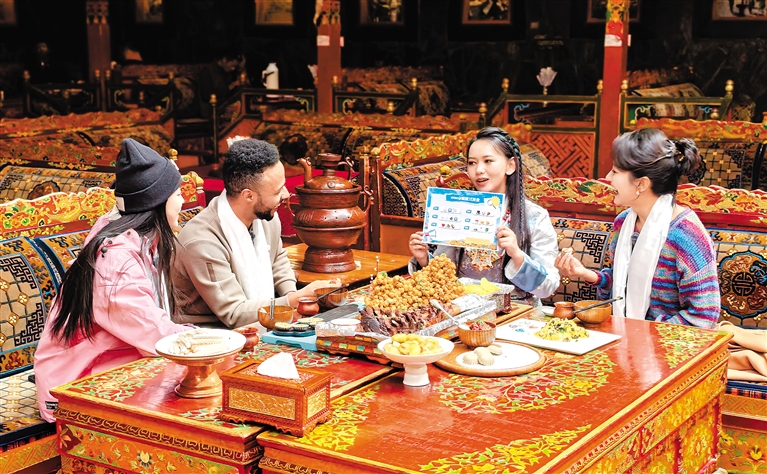 “在我們餐廳,經(jīng)常能看到不同民族、不同地方的人們同吃一道菜、共飲一壺茶的場景,大家其樂融融,就像一家人一樣?!辈惋嫹杖藛T益西說。