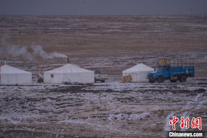 10月23日,西藏自治區(qū)那曲市安多縣多瑪鄉(xiāng)牧民在雪中放牧。當日,一場雪將藏北草原裝扮得如詩如畫。牧民們在這銀裝素裹的天地間,開始了雪中放牧的生活。牛羊在雪地中悠閑覓食,牧民駕駛著摩托車,在雪中放牧,形成了一幅動人的風景畫。圖為牧民在草原上搭建的帳篷。中新社記者 貢嘎來松 攝