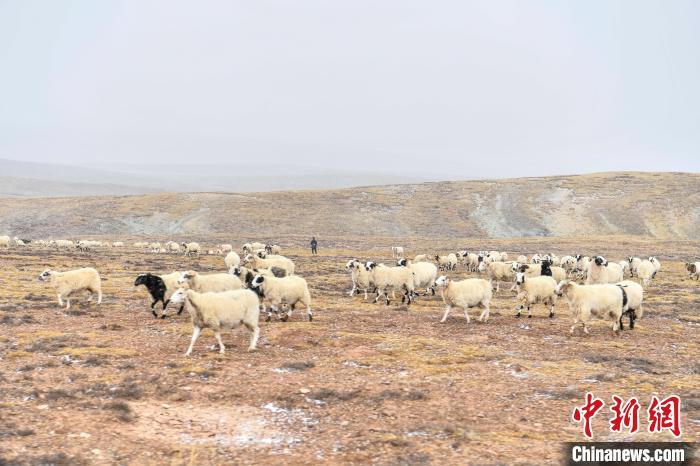 10月23日,西藏自治區(qū)那曲市安多縣多瑪鄉(xiāng)牧民在雪中放牧。當日,一場雪將藏北草原裝扮得如詩如畫。牧民們在這銀裝素裹的天地間,開始了雪中放牧的生活。牛羊在雪地中悠閑覓食,牧民駕駛著摩托車,在雪中放牧,形成了一幅動人的風景畫。圖為羊群在草原上覓食。中新社記者 貢嘎來松 攝
