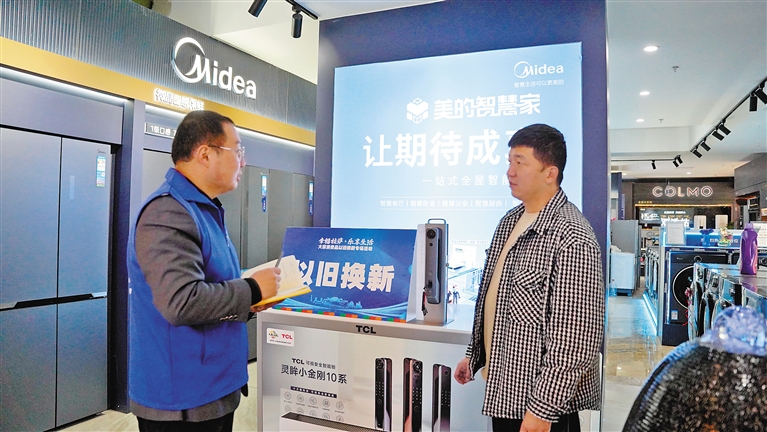 圖為在拉薩家具家電以舊換新專場,消費者向銷售人員了解相關(guān)政策。記者 貢曲羅杰 攝