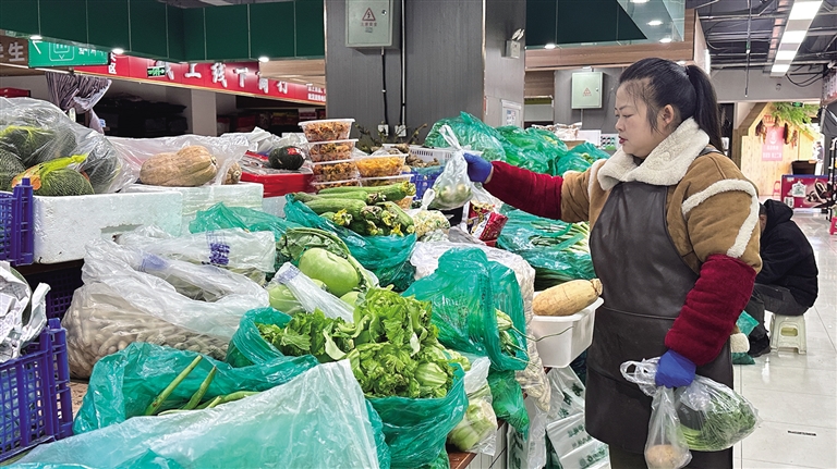 除了農貿市場,商超售賣的蔬菜也備受市民青睞。在拉薩市城關區(qū)東郊的一家大型超市,記者看到蔬菜區(qū)人流如織,菜品十分新鮮。在價格方面,茄子每斤8.98元、嫩南瓜每斤4.98元、菠菜每斤10.98元、小白菜每斤5.98元、大白菜每斤2.58元?!岸蕴}卜,夏吃姜?,F在天氣冷了,買些蘿卜回家燉湯,暖胃又暖心?!币晃徽谔暨x蘿卜的阿姨說道,“超市的蔬菜種類齊全,購物環(huán)境也好,我很喜歡來這里買菜。”