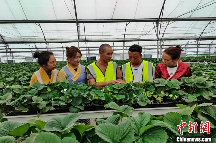 資料圖為西藏山南市貢嘎縣民眾在煙草行業(yè)援建草莓基地學(xué)習(xí)技術(shù)。國(guó)家煙草專賣局 供圖