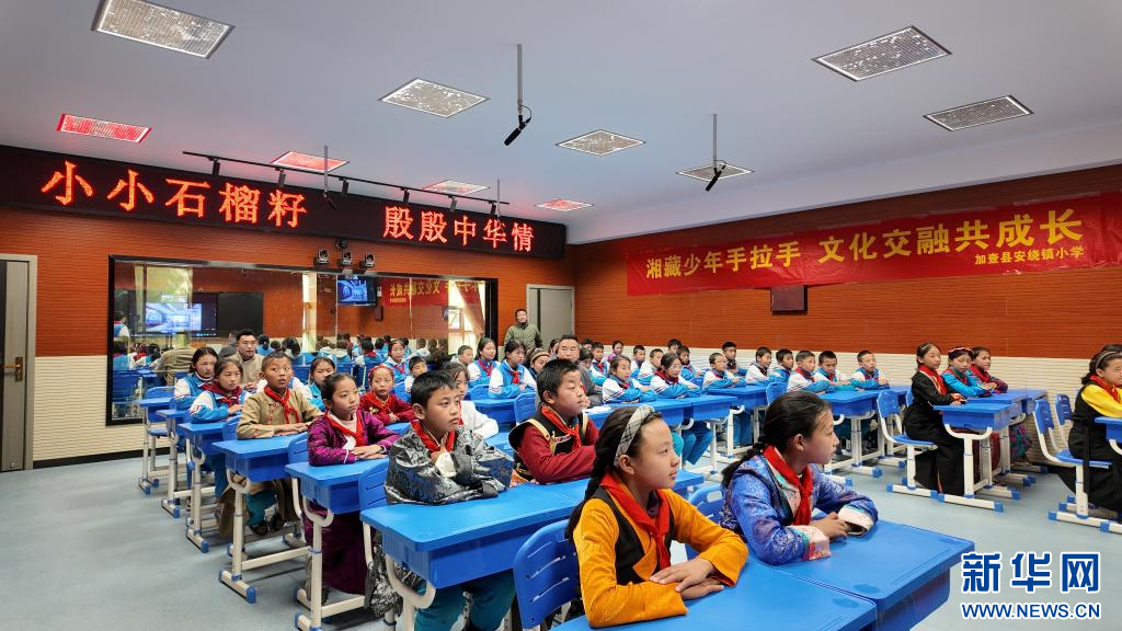 走進(jìn)山南安饒鎮(zhèn)小學(xué)的同心筑夢(mèng)文化園,我國(guó)各民族的簡(jiǎn)介牌立在道路兩旁,來自不同民族的“小小講解員”介紹中國(guó)優(yōu)秀傳統(tǒng)文化;錄播教室的“空中課堂”,學(xué)生正在和湖南常德的課堂進(jìn)行直播連線……鑄牢中華民族共同體意識(shí)的種子正在稚嫩的朗朗讀書聲中生根發(fā)芽。
