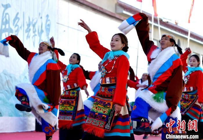圖為第三屆“鄉(xiāng)村振興 那曲奮進”成果轉化暨第十八屆畜產(chǎn)品展銷會開幕式上的文藝演出。李林 攝