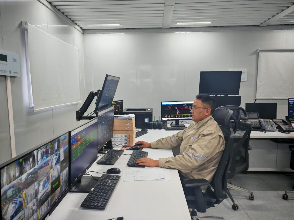 在西藏八宿縣,大唐八宿風(fēng)電場運(yùn)維技術(shù)員洛松澤仁在中控室監(jiān)測風(fēng)機(jī)運(yùn)行情況。(任明喬 攝)