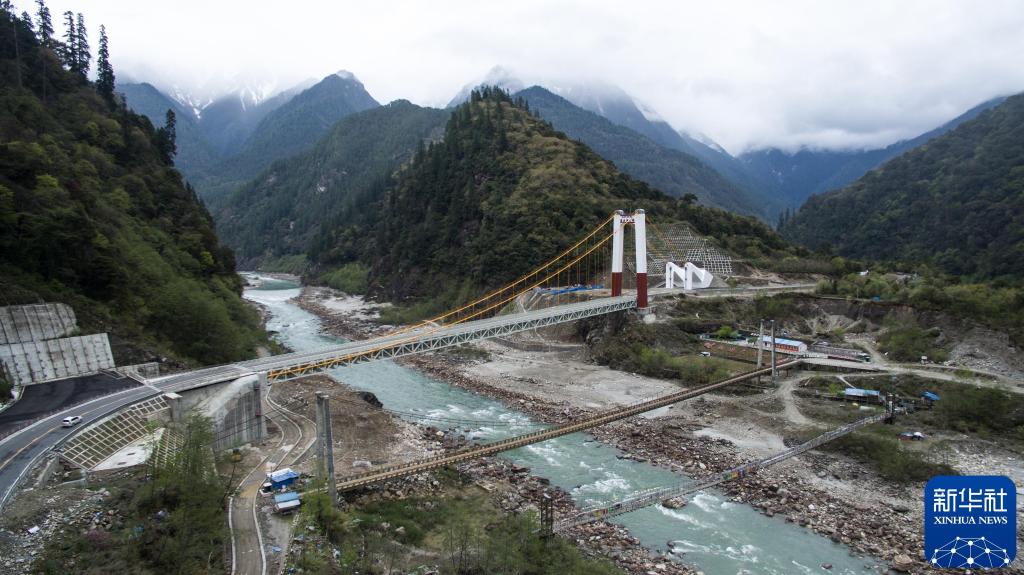 2016年3月29日拍攝的剛建成的通麥大橋。“通麥天險”路段位于西藏波密縣和八一鎮(zhèn)之間,這里是整個川藏公路線最險的一段。2012年開始,“通麥天險”被納入川藏公路線改造計劃。2016年4月13日正式通車。新華社記者 普布扎西 攝