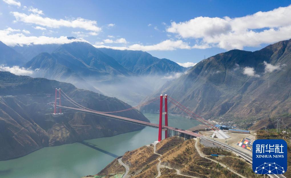 2019年10月16日拍攝的雅康高速瀘定大渡河大橋(無人機照片)。該橋2018年底建成通車。新華社記者 江宏景 攝
