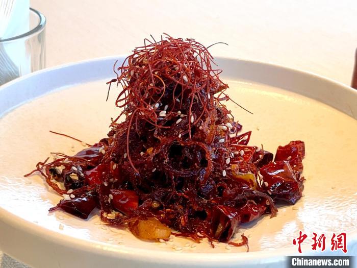 圖為在西藏拉薩的新藏式餐廳中的燈影牦牛肉絲。王利文 攝